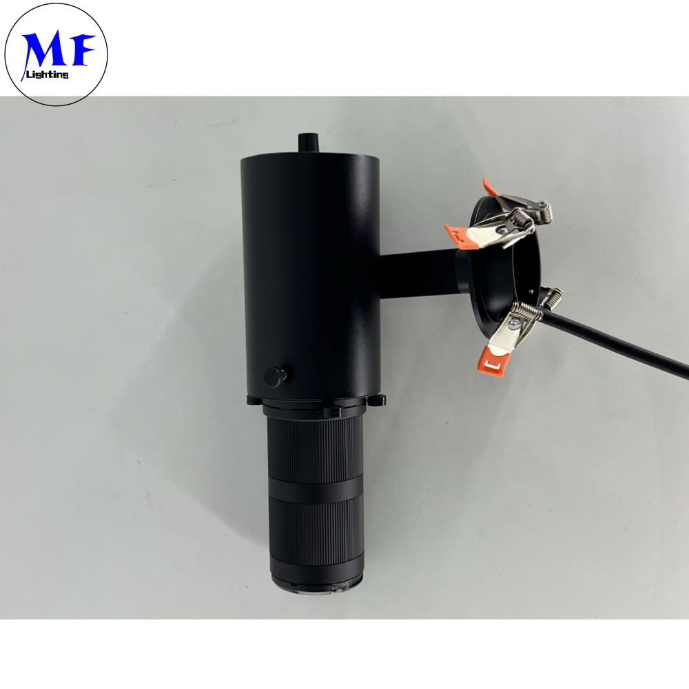 मैनुअल स्क्रू को ढीला करें और 360° स्पॉट रोटेशन समायोजन फ़ंक्शन प्राप्त करने के लिए लेंस को घुमाएं। प्रोजेक्शन और लाइट स्पॉट के 360° रोटेशन को हल करने के लिए डिवाइस।